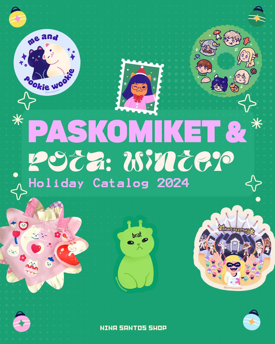paskomiket & pota winter catalog 🎄✨ rts appreciated! seeya tmrw at paskomiket table D35 & pota winter dec 14-15 table F3-F4! #catmerch #strawberrydreams #skzoo #skz #splatoon @KomiketPH @PatronsOTArts
