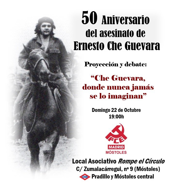 El próximo domingo 22 tenemos un acto en Móstoles con motivo del 50 Aniversario del asesinato del Che! No faltéis! #Che50 #50siempreElChe