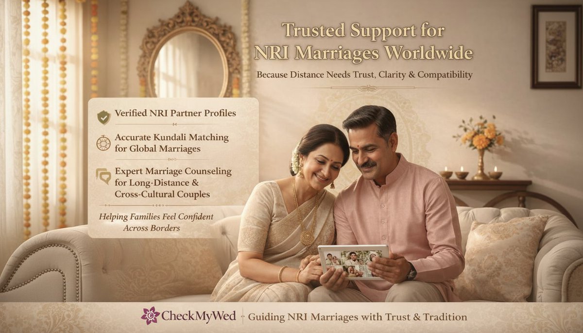 NRI marriages need trust beyond borders ๐ โ Partner Verification โ Kundali Matching โ Marriage Counselling Helping families choose with confidence โค๏ธ Visit Today ๐ checkmywed.com #NRIMarriage #CheckMyWed #VerifiedMatches #KundaliMatching #MarriageCounselling