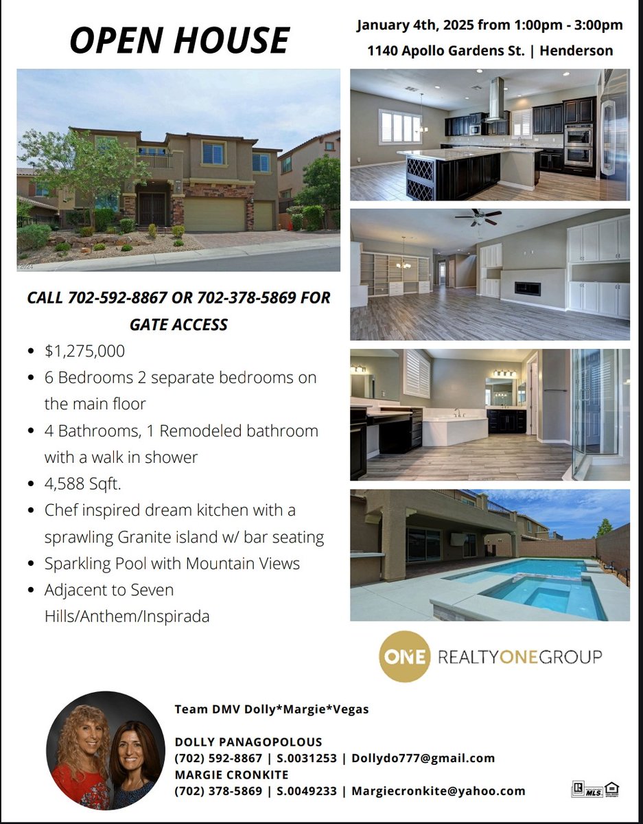 You are cordially invited to our OPENHOUSE this Saturday!l 1-3! 1140 Apollo Gardens #milliondollarlisting #chefskitchen #saturdayopenhouse #poolhome #3cargarage #hendersonnevada #lasvegasnevada #lasvegas #gatedcommunity @MargieCronkite