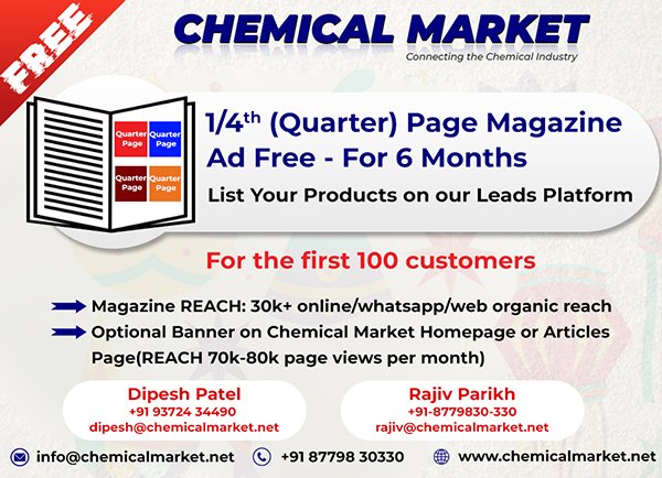 Get FREE 1/4th Page Advertisement (quarter page ad) for 6 months in our monthly magazine Chemical Market. Connect with us today forms.gle/mmHh8C6FA2uQQr… #chemicalindustry #advertisement #ChemicalMagazine #chemicalmanufacturer #chemicalsupplier