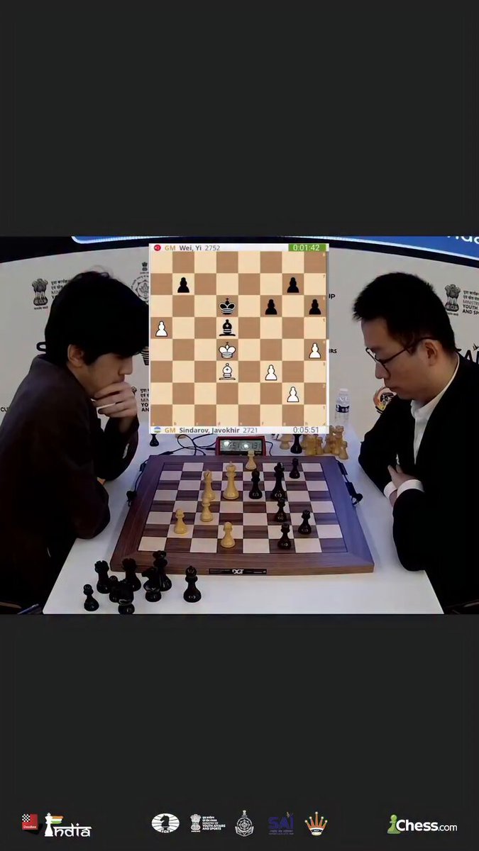 FIDE World Cup Finals 2025 Game 3: Sindarov misses a win against Wei Yi Sindarov🇺🇿 got an opportunity in the same color bishop endgame after his opponent, Wei🇨🇳 blundered. 📷Shahid Ahmed #Chess #ChessBaseIndia #FIDEWorldCup #Finals #Tiebreak #Rapid #Uzbekistan #China…