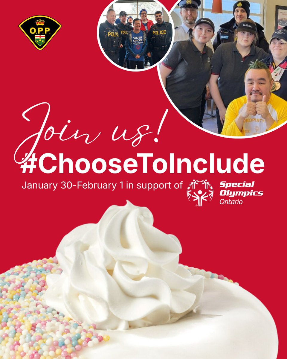 A powerful way to #ChooseToInclude 🍩 From January 30 to February 1, communities across Ontario unite to help change lives through the power of sport and inclusion. The OPP remains committed to supporting @SOOntario programs, helping athletes with intellectual and developmental