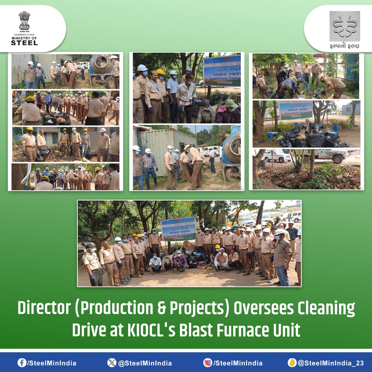 #KIOCL's Director (Production & Projects) leads cleaning efforts in front of CPP opposite the Coke Oven Site, emphasizing the company's commitment to cleanliness and maintenance. #CleanUpDrive #SwachhataPakhwada