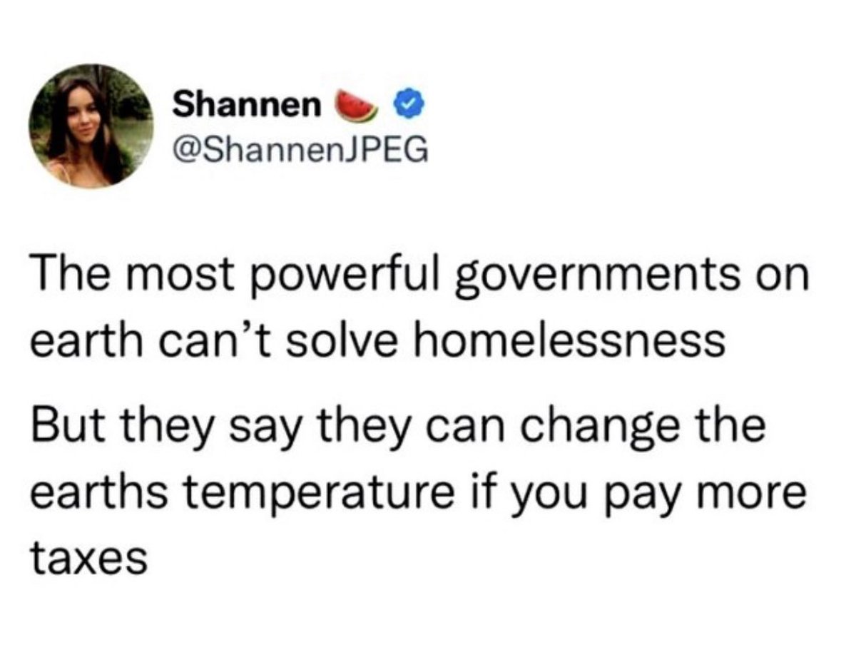 Yes, yes. We are all going to die unless we denounce God, declare our faith in the #ClimateChangeCult, promise to abort babies, submit children to gender affirming sterilization, eat bugs, raise our communist fist & pledge allegiance to transbow flags. We’ll get right on that.🙄