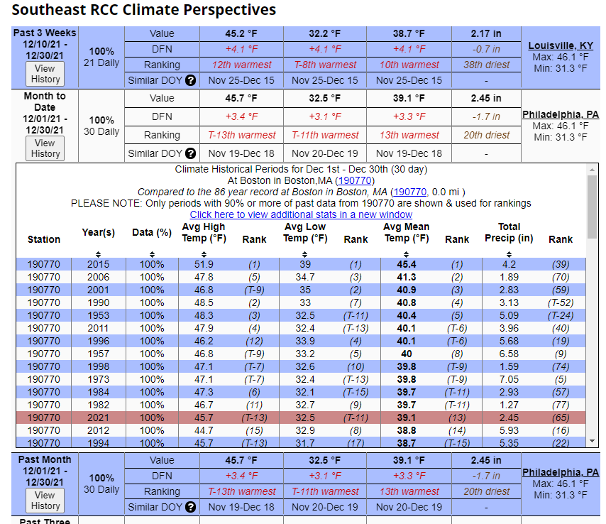 December 2021 in Boston was similar in temperature to a Philadelphia, PA December. #WeatherWisdom #Climateperspective