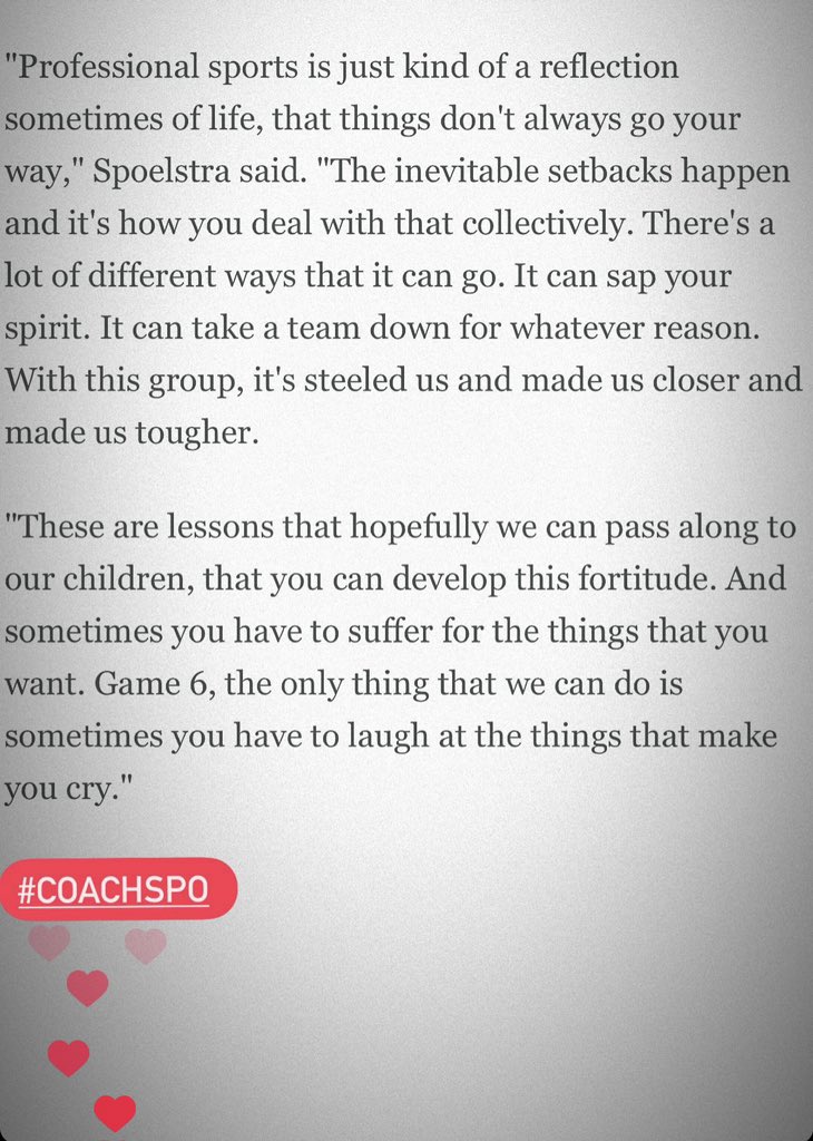 Shout out to #CoachSpo for repping his teal LK band this #SAAM at last nights @MiamiHEAT post game press conference!