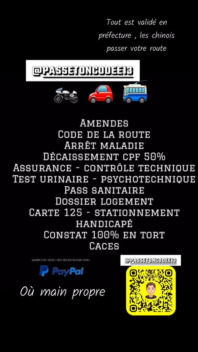 Le seul et unique que j’ai confiance en 100% dans toute la France ! Son snap c’est 👻Passetoncodee13👻 Il fait tout tout tout CODE AUTO CODE MOTO CODE BATEAU PERMIS TOUT !!! #codeauto #codemoto #permisauto #permisbateau #decaissementCPF