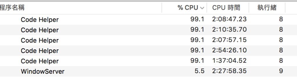 好幾個 #CodeHelper 程序通通用 8 執行緒在跑是怎樣? #ATOM 系的程式碼編輯器 (包含 微軟 #VisualStudio Code for Mac) 這個吃 CPU Loading 的問題都沒辦法解決,把程序殺掉之後 CPU Loading 才降下來.... Orz images.plurk.com/6BHJ2azRRSr7i4… images.plurk.com/7JwQfHfqw7knxf…