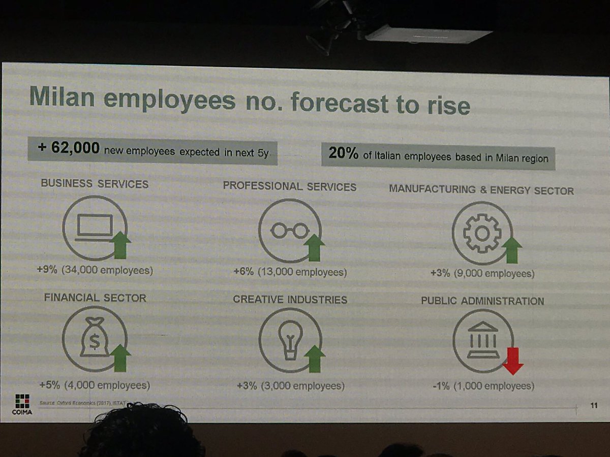 #CoimaReForum previsioni per #Milano per i prossimi 5 anni Ulteriore richiesta di spazi #uffici Mercato oggi guidato da scarsa qualità Affittuari oggi chiedono #localizzazione e qualità #sostenibilità Cresce il Coworking