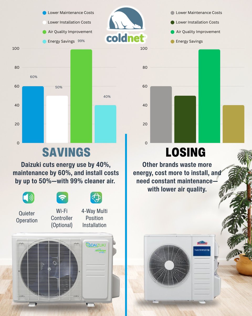 Daizuki saves more. Other brands cost more. It’s that simple. #Daizuki #Savings #Coldnet #HVAC #FullInverter #HVAC