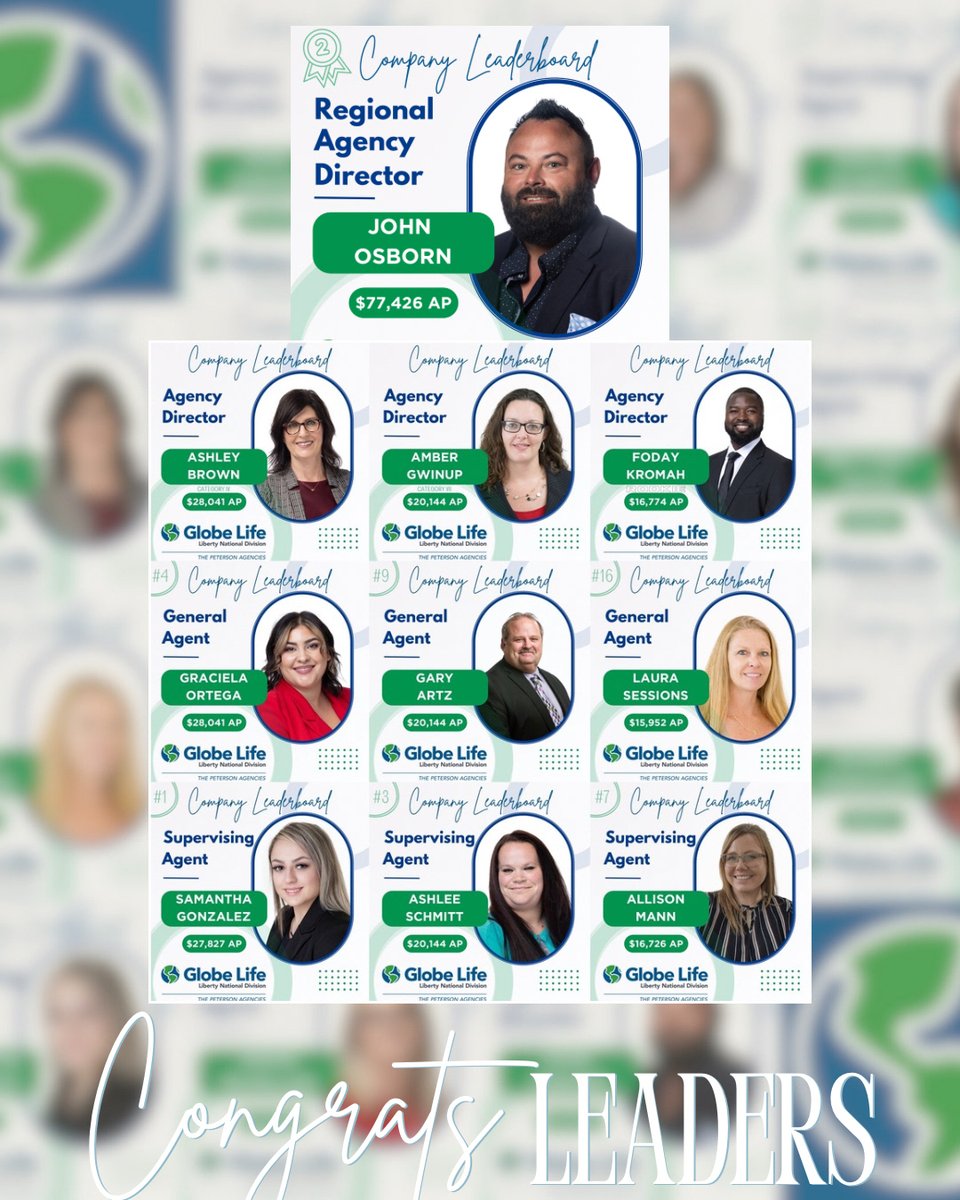 When leaders lead from the front, results follow. The work ethic from this group is incredible and it’s paying off in a big way. Congratulations to these individuals!👏🏼 #thepetersonagencies #companyleaderboard #topagents #lifeinsurance