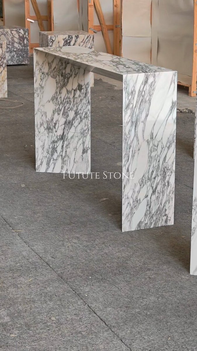 A set of 4 marble consoles: Arabescato's drama meets Calacatta Viola's royalty, made by FutureStone Email: [email protected] WhatsApp & WeChat: +86 16676606642 #naturalmarble #consoletable #consoletabledecor #entrancetable #EntrywayGoals #InteriorDesign
