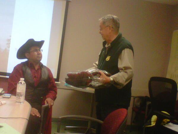 Chief Roger Williams #Tsilhqotin presented a blanket frm Larry Grant #Musqueam Watch for #ConstitutionalExpress