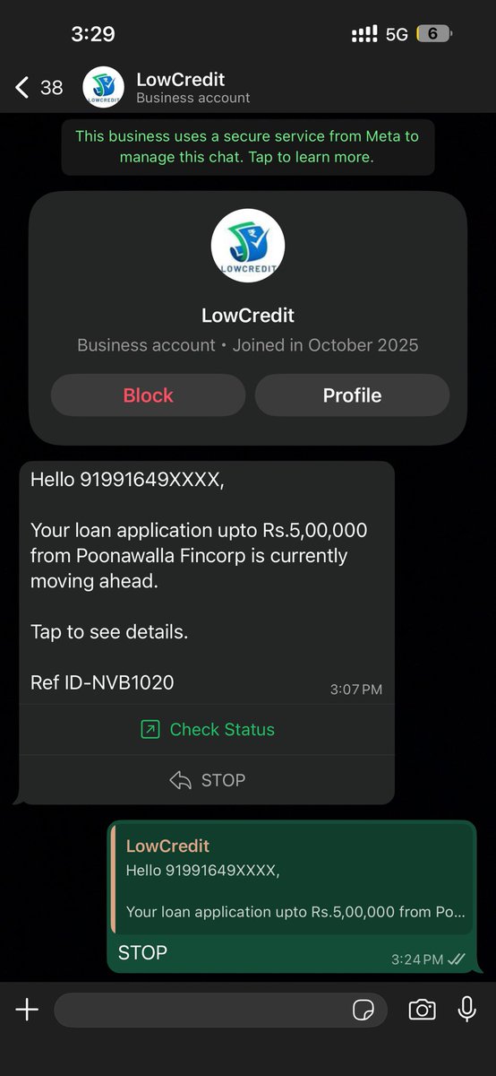 Hi, @poonawallafinco @adarpoonawalla Hi @PoonawallaCare, I am receiving unsolicited WhatsApp messages regarding a loan I never applied for. Is this a known scam or an error in your system? Please look into this. #ConsumerComplaints #CyberSafety #PoonawallaFincorp