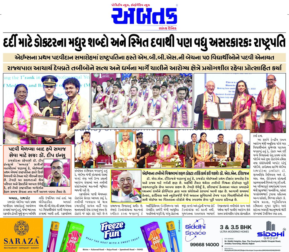 🔸રાજકોટમાં એમ્સના પ્રથમ દીક્ષાંત સમારોહનું આયોજન 🔸રાજયપાલ આચાર્ય દેવવતે જરૂરિયાતમંદોને મદદ કરવાની શીખ આપી #AIIMSRajkot #Convocation2026 #MedicalGraduation #FirstConvocation