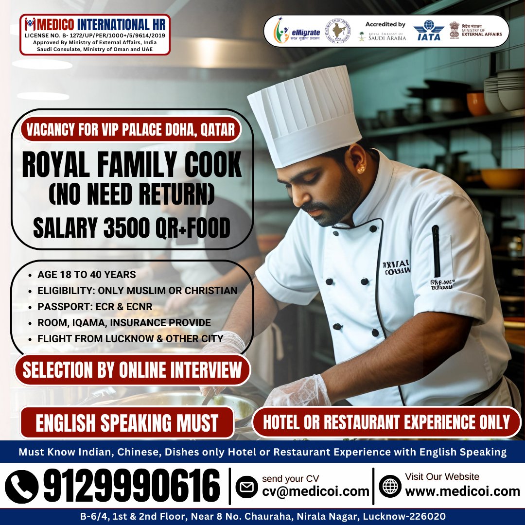 Royal Family Cook - No need Return Salary 3500 QR + Food #cookjob #cookjobs #cook #cooking #chef #dubaijob #jobs #thegoanshack #hotelmanagementjobs