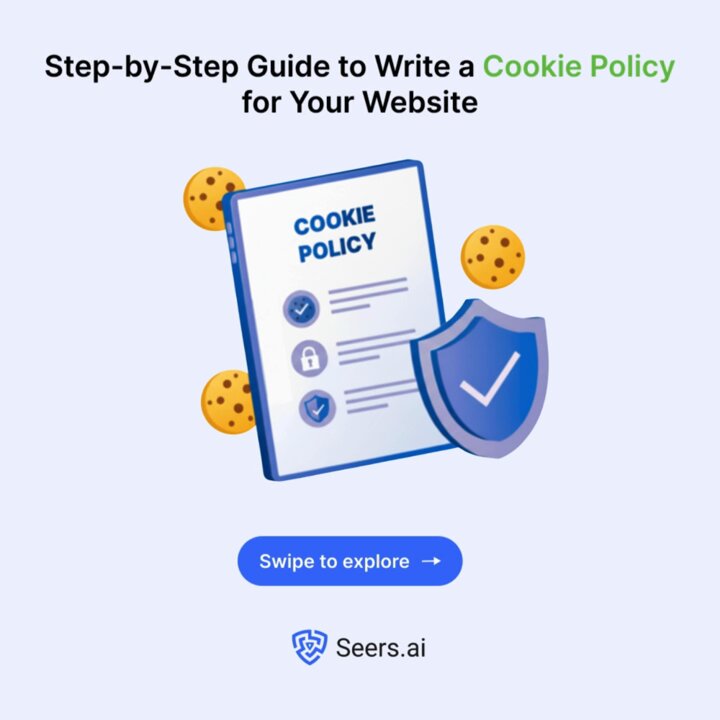 Ever felt stuck trying to write a cookie policy? You’re not alone. A cookie policy is more than a page; it explains data use, builds trust & keeps you compliant. Swipe for a step-by-step guide to write a cookie policy. #CookiePolicy #UserTrust #WordPress #Shopify #SeersAi
