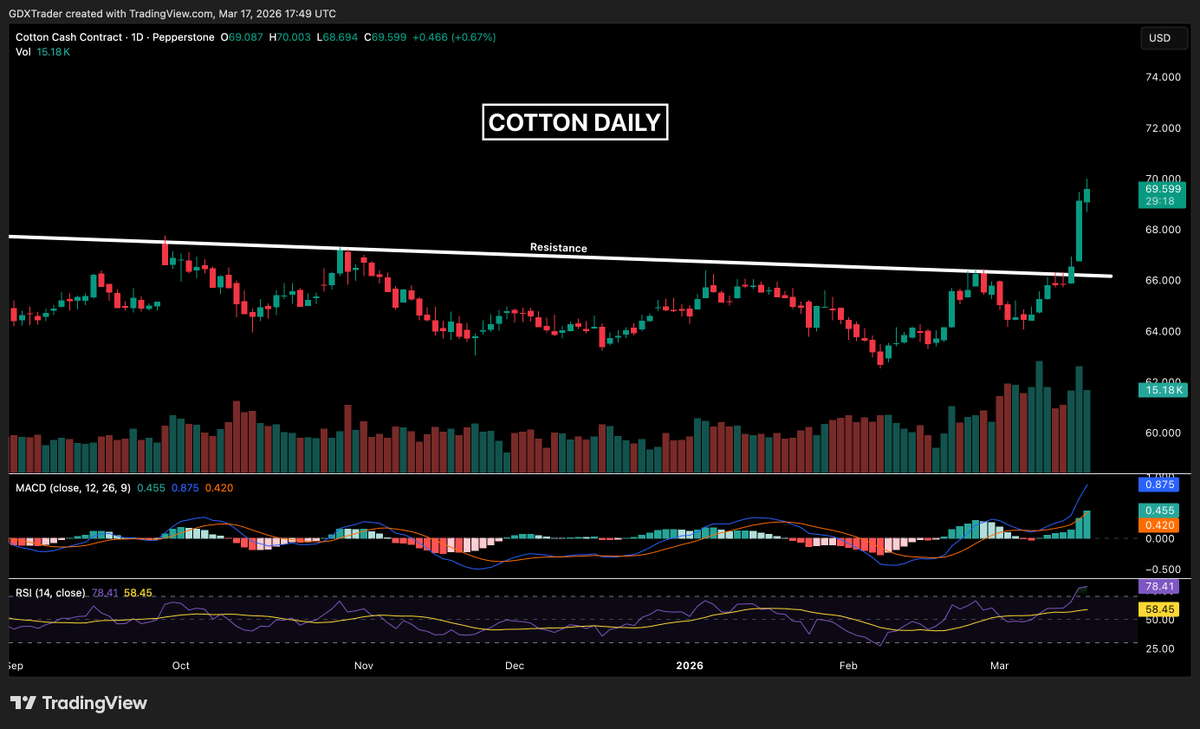 #cotton- 78 print. 1 year high. A penny from contract highs. 12 cents off the contract low hit this time last year! As of Last Tuesday, Funds were still short (2K contracts).