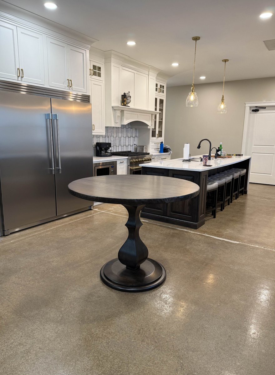 Dusting off that distress and completing a counter height round! 🔗bit.ly/DesignYourTable #countertable #counterheight #counterround #rounddesign #tabledistress #kitchendesign #kitchentable