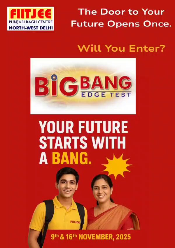 Don’t watch others get ahead — grab your edge with FIITJEE’s Big Bang Edge Test! #BigBangEdgeTest #FIITJEEEdge #CrackTheEdge #IITDreamsStartHere #TopperMindset #BBET2025 #PunjabiBagh #DelhiStudents #DelhiSchools #FIITJEEPunjabiBagh #DelhiToppersChoice #IITJEE #ExamPrep