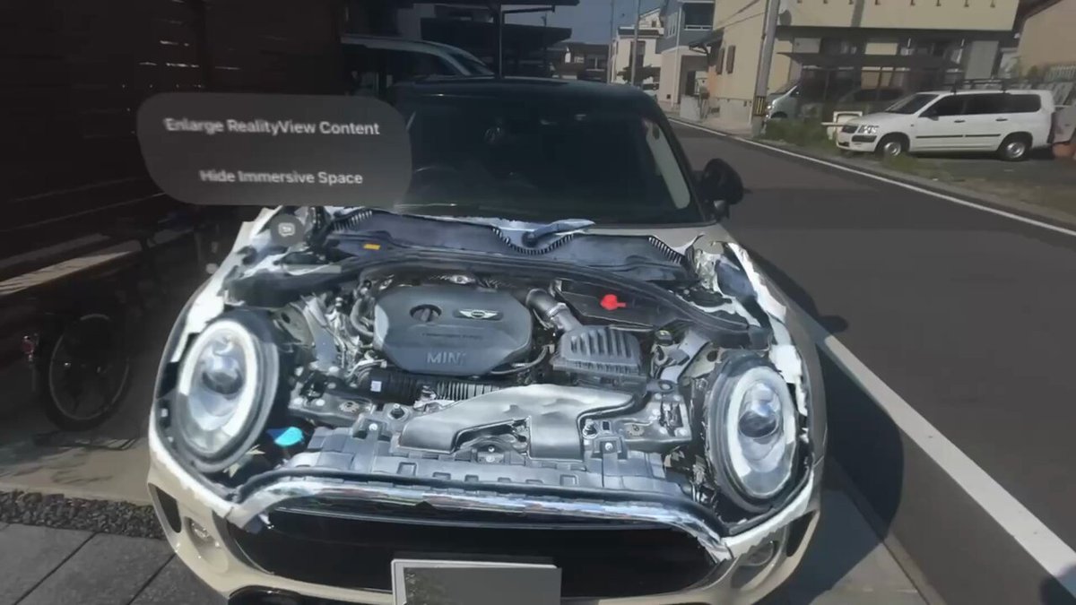 Apple Vision Proで実車のシースルー表示を試してみた。ボンネットを閉めても内部が見える。ObjectTrackingを利用して位置合わせ トラッキング用3Dデータの作成は #scaniverse を利用 #visionpro #createml #MINI