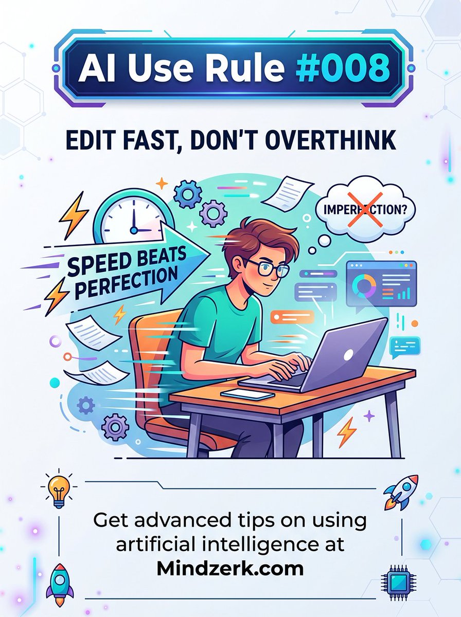 Perfection slows you down. Waiting to “get it right” kills momentum. Create. Adjust. Improve. Edit fast. Speed builds progress. oracle.mindzerk.com/edit-fast/ #Productivity #ContentCreation #CreativeProcess #Mindzerk #PromptVillain
