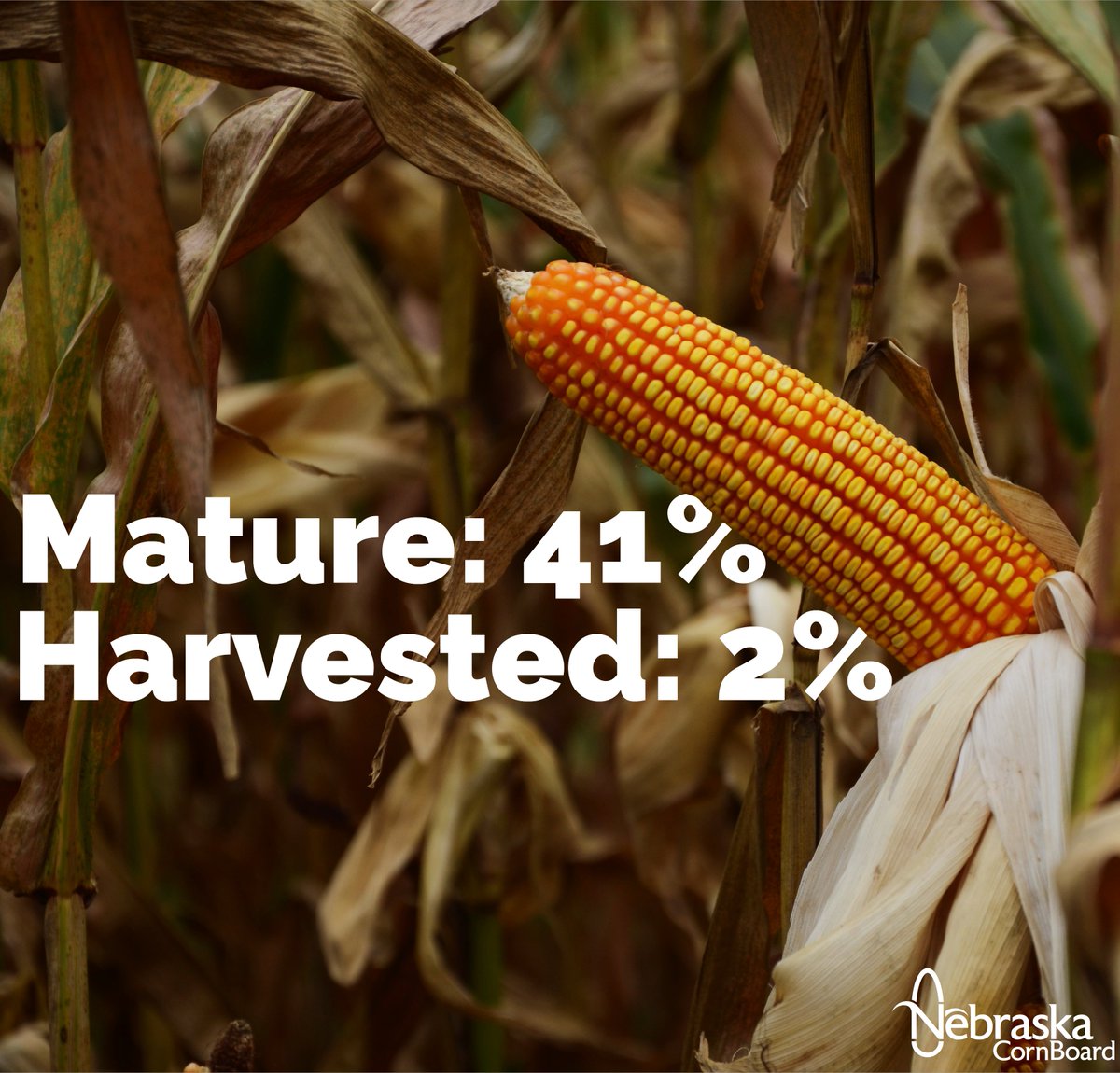 It's official, harvest is underway! According to the latest #cropprogress report, 41% of Nebraska's corn crop is mature, while 2% is harvested. Have you started harvesting yet? Don't forget to send us your #harvest photos! #NECorn