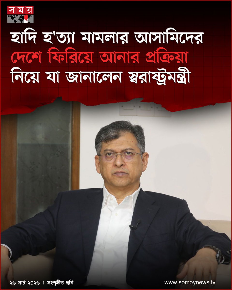 ভারতের আইনশৃঙ্খলা বাহিনীর কাছে বন্দি ইনকিলাব মঞ্চের মুখপাত্র শহীদ শরিফ ওসমান হাদি হত্যাকাণ্ডের প্রধান আসামি ফয়সাল করিম মাসুদ ও তার সহযোগী আলমগীর হোসেন বিস্তারিত : somoynews.tv/news/2026-03-2… #BangladeshNews #CrossBorderIssue #LawEnforcement #somoytv