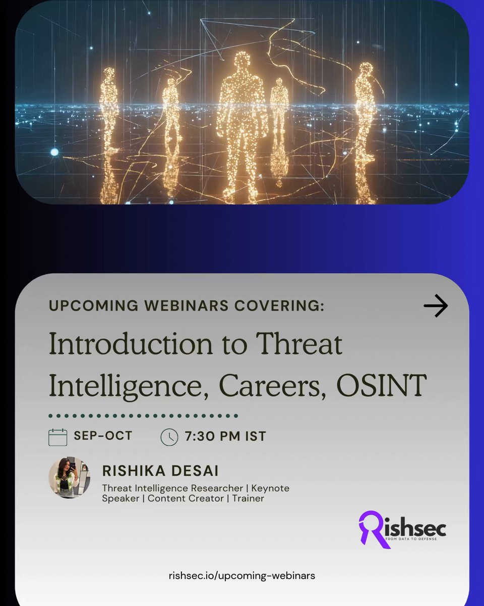 Want to dive into Threat Intelligence but don’t know what it has to offer? Let’s clear it up! Register today: rishsec.io/upcoming-webin… Use Code: CTIWEB10 (add both webinars to the cart) #threatintel #CybersecurityTraining