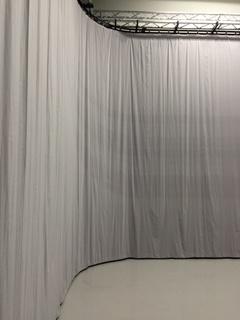 Track fixed, #cycloramas going up. boys from @Rosco_Labs #roscotex are doing a great job #LCADemoRoom