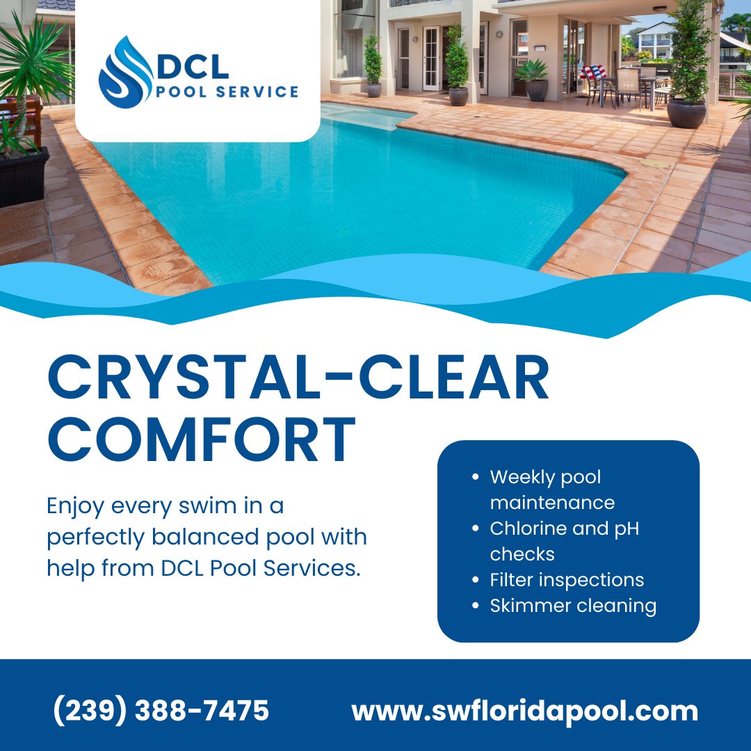 Let us take care of your pool, so you can enjoy every swim stress-free. #BackyardBliss #DCLPoolServices #PoolPros #SWFLLiving #CleanPoolLife