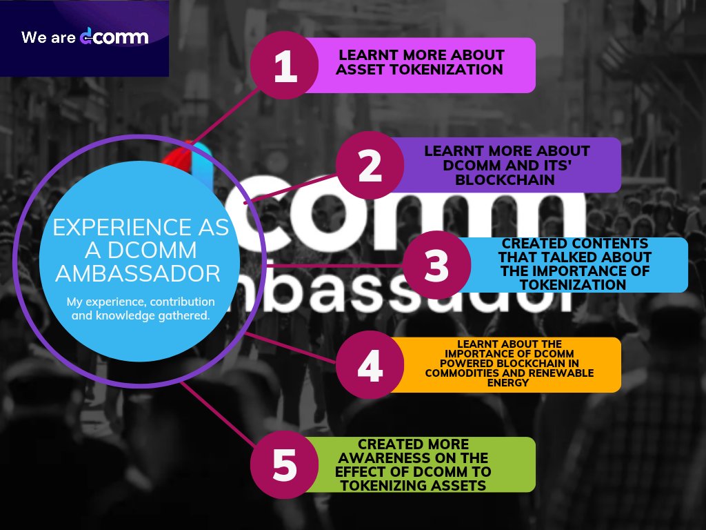 My experience, lessons, contributions and knowledge gathered as a @DComm_Official ambassador. #DComm #DCommAmbassador #Ambassador