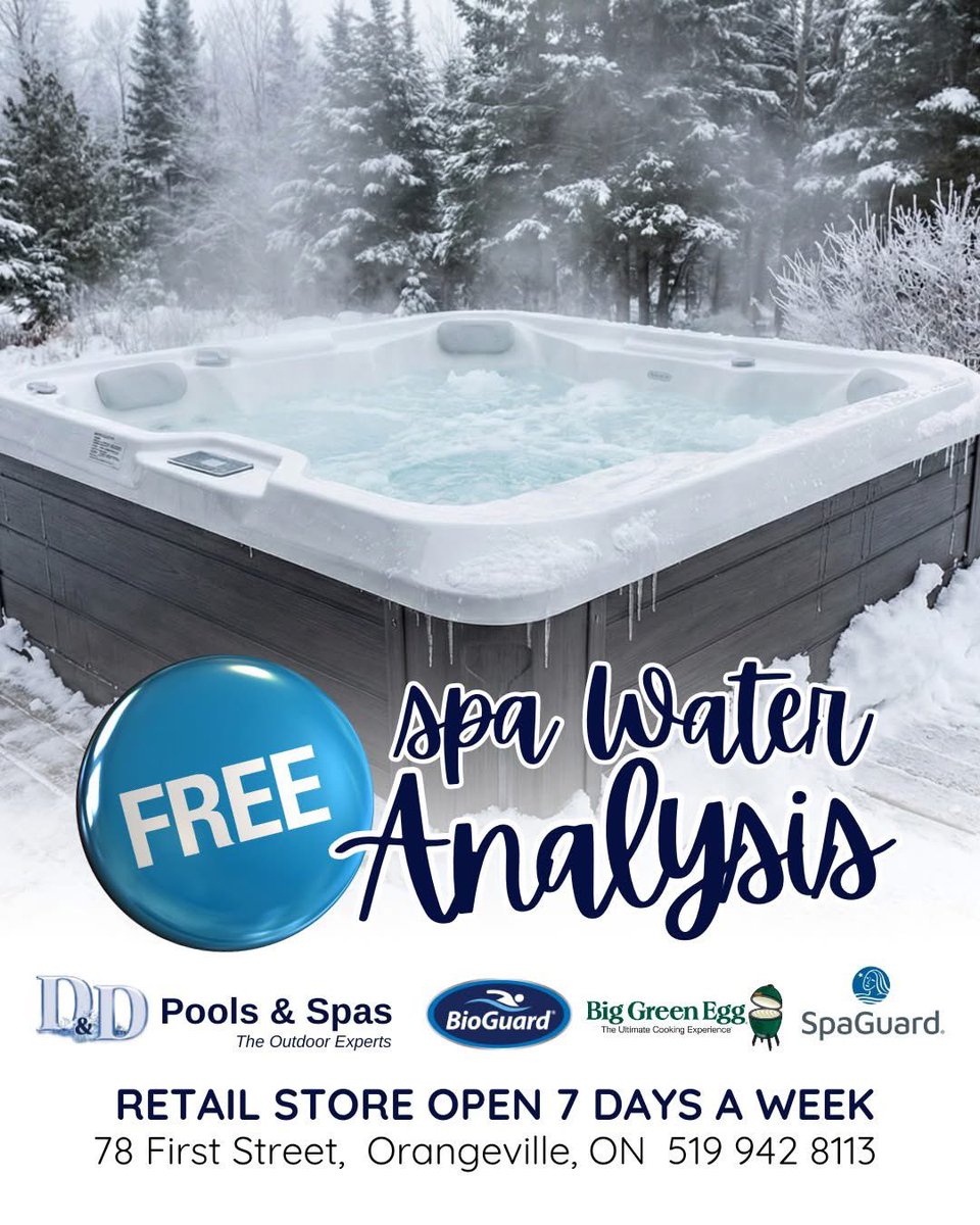 Free water testing to ensure maximum enjoyment of your spa. Bring in a water sample and we'll gladly test it using our computerized testing system. D & D Pools and Spas 78 First Street, Orangeville Call (519) 942-8113 #BigGreenEgg #DDPools #FamilyOwned #FamilyBusiness #Pools