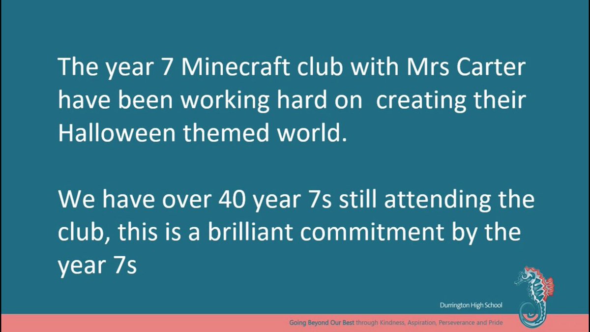 Year 7 minecraft club takes place after school every Tuesday in F27 with Mrs Carter. Come along and join the fun! #DHSClubs #DHSComputing