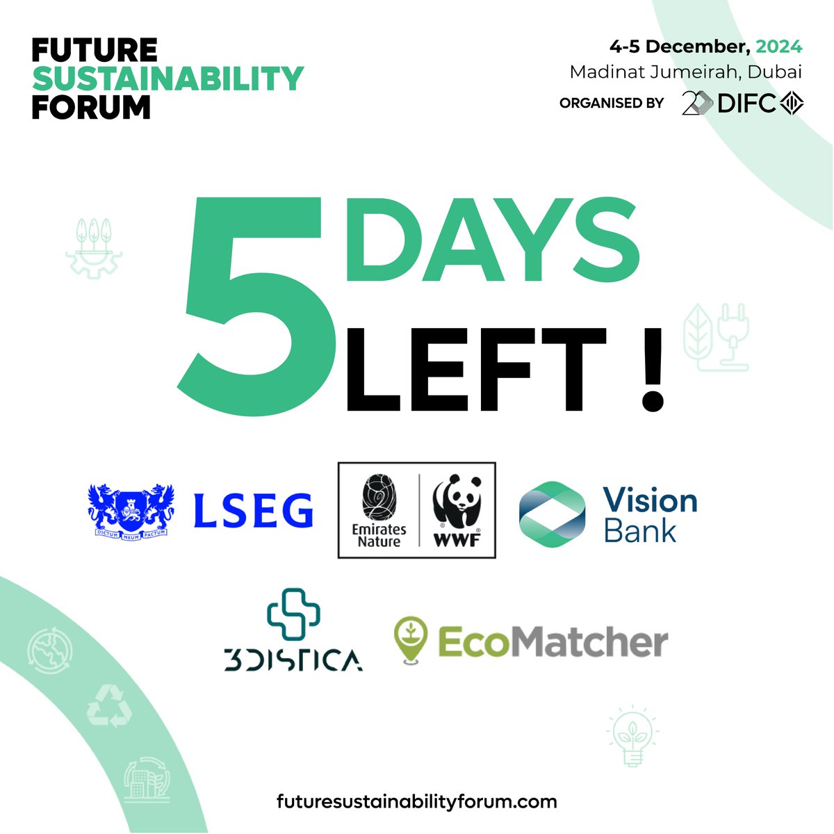 Only #5days to go for Future Sustainability Forum 24! 📷 Have you Booked Your Tickets yet? futuresustainabilityforum.com/get-involved/ #DIFCevent #FSF24 #sustainability #sustainable #ecofriendly #sustainableliving #environment #zerowaste #greenliving #ecofashion #sustainablelifestyle @DIFC