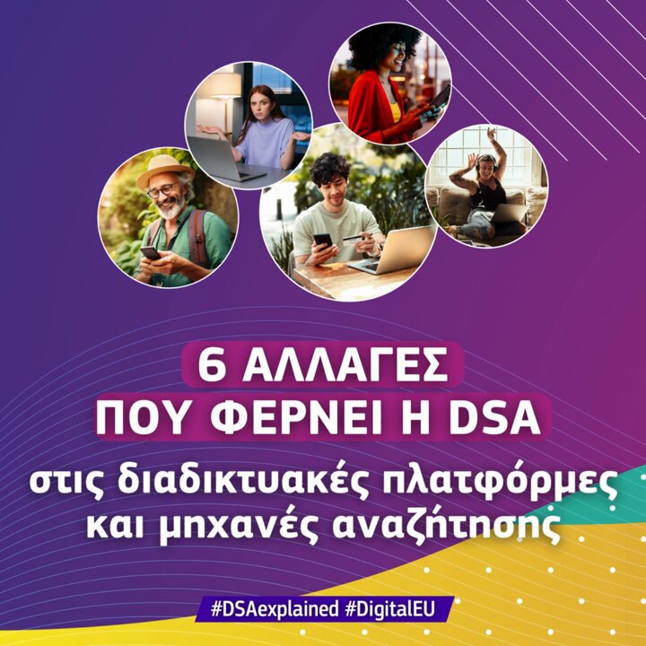 Αναρωτιέστε τι αλλαγές θα δείτε στις διαδικτυακές πλατφόρμες & μηχανές αναζήτησης; Η #DigitalServicesAct αλλάζει τον διαδικτυακό κόσμο προς το καλύτερο, προασπίζοντας τα θεμελιώδη δικαιώματά σας & κάνοντας το διαδίκτυο πιο διαφανές & δίκαιο. Μάθετε περισσότερα #DSAexplained ↓