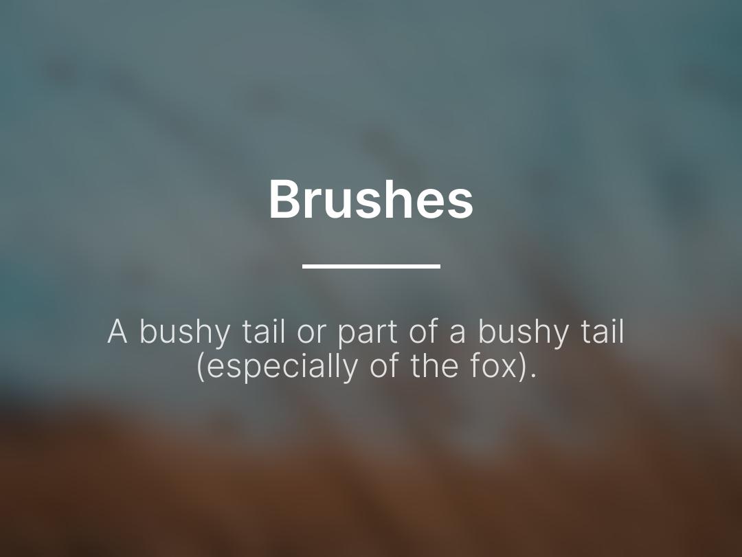 Brushes: A bushy tail or part of a bushy tail (especially of the fox). #Brushes #WordOfTheDay #DailyDefinition