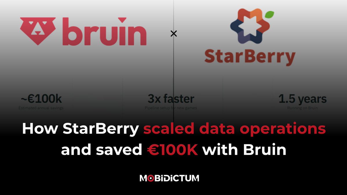 Scaling data shouldn’t mean scaling your team StarBerry Games saved €100K annually and built pipelines 3x faster with Bruin Here’s how they did it 👇 bit.ly/3OT2a75 #gamedev #data #analytics