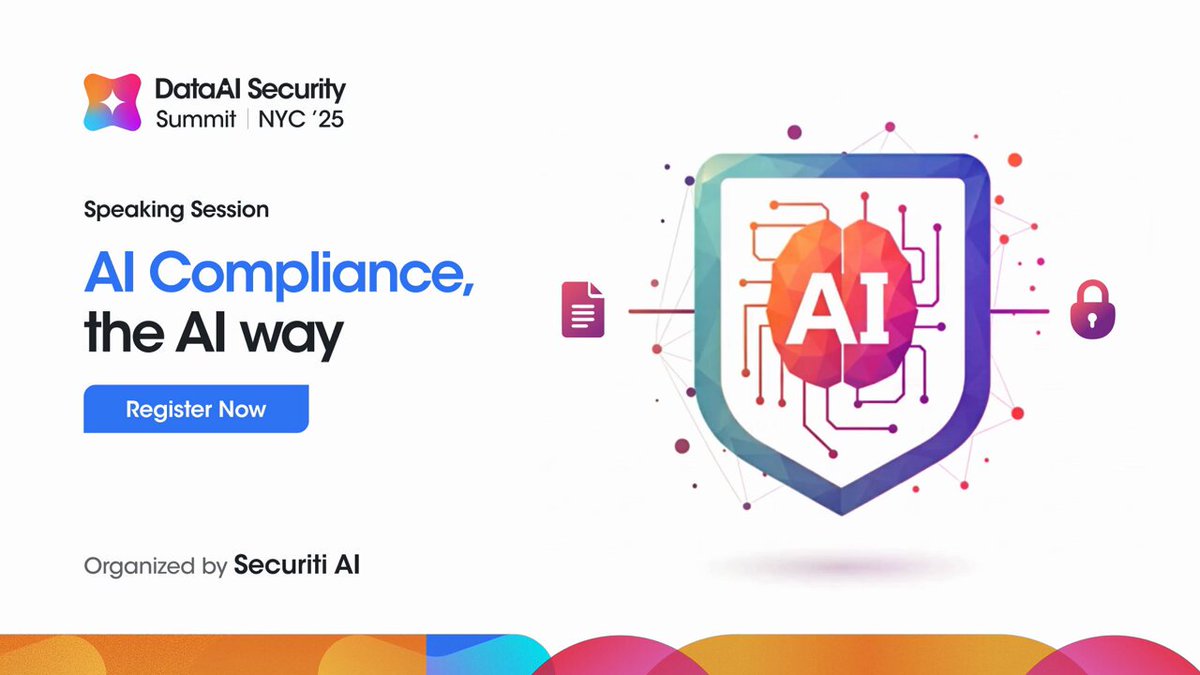 Traditional compliance can’t keep up with AI’s speed or scale. Join us at #DataAISecurity Summit NYC on Oct 23 for “AI Compliance, the AI Way”, learn how peers use AI to automate controls & monitoring. Register: DataAI.Security #DataAISec2025 #DSPM #AICompliance