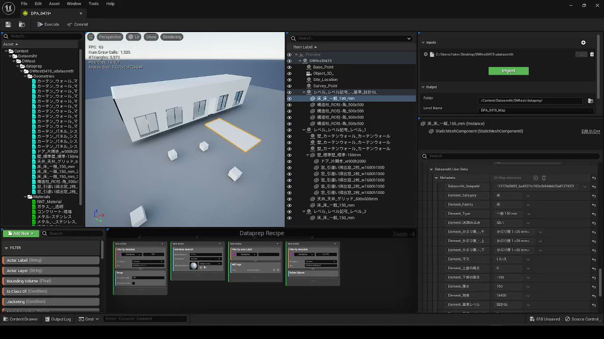 mozさん( @momomo_moz ) に教えてもらったDataprepで ・マテリアルの置換 ・UEへの読み込み不要なオブジェクトの自動削除 ・プロパティをキーにオブジェクトのMerge が、一瞬で終わった!! Dataprepめっちゃ便利!!! #UE5 #Dataprep