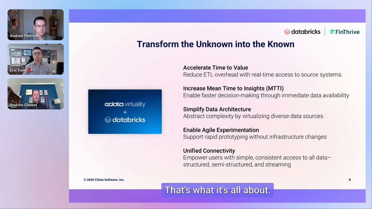 #CDataFoundations: Bridge the gap between technical and business users with the combination of @CDataSoftware + @Databricks. 💡 #DataVirtualization reduces #ETL overhead and hydrates the Databricks lakehouse faster, without additional pipeline work: bit.ly/4n73bTW