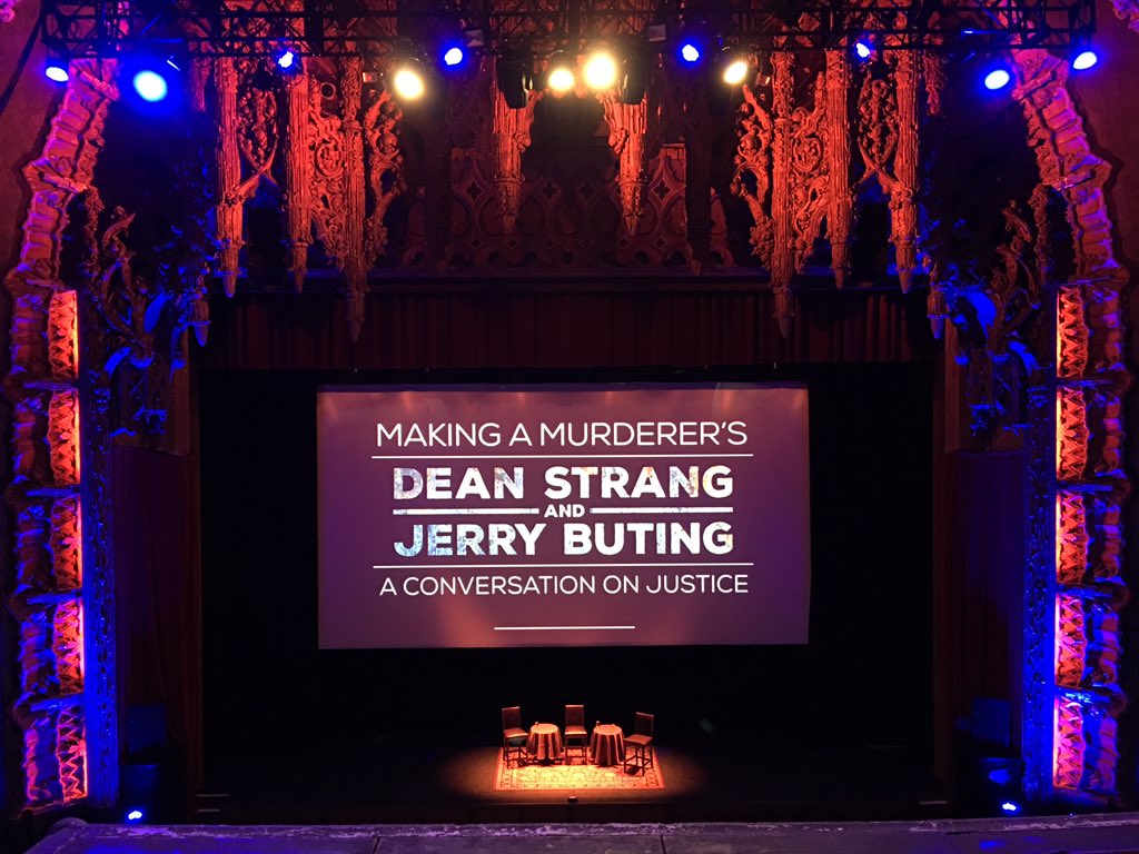 Getting ready for @tpac show w/ lawyers of #MakingAMurderer. Great to talk criminal justice w/ @JButing #DeanStrang