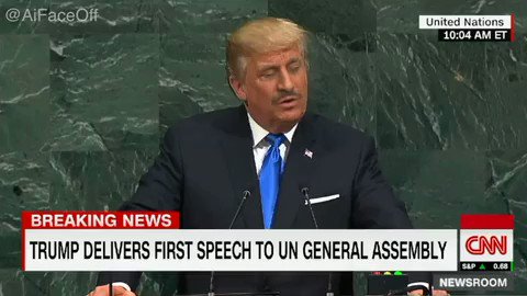 When Ahmadinejad went to UN as Trump follow @AiFaceOff for more #AI generated videos #MachineLearning #DeepLearnig