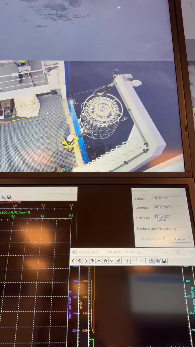 Day 9 Falkor (too): Early morning CTD cast. A great way to start the day! #deoxygenation #ETSP #FKt240412