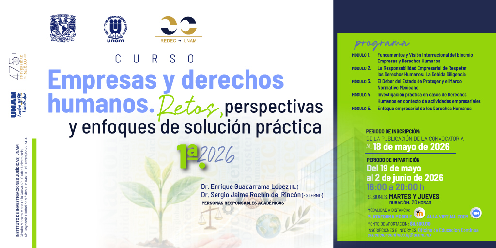La Debida Diligencia ya no es opcional, es una necesidad global. 🌍⚖️ Únete a este curso para analizar la responsabilidad empresarial de respetar los #DerechosHumanos y el marco normativo mexicano. ¡Capacitación de alto nivel! 🔗 Registro aquí: juridicas.unam.mx/educacion/dipl…