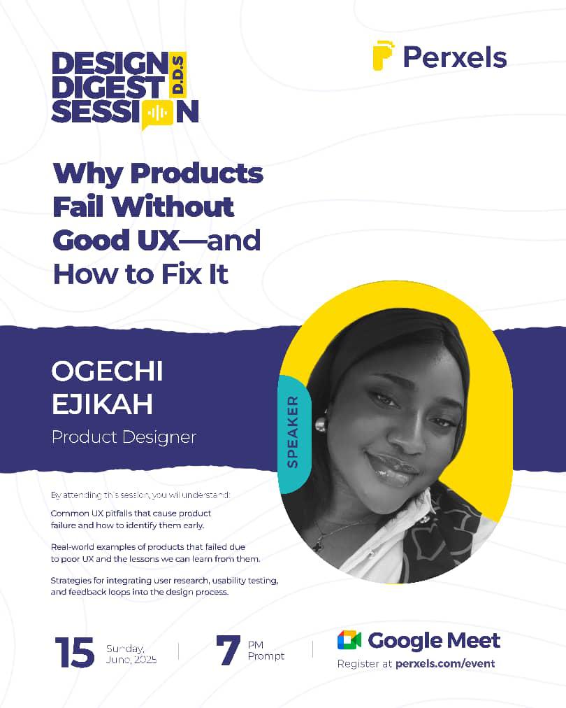 Design Digest Recap Yesterday’s Design Digest with Ogechi Ijeoma was a powerful reminder that UX is more than looks-it’s about function, empathy & real user needs. We learned why products fail & how to fix it with research, clarity, & care. #UXDesign #DesignDigest #ProductDesig