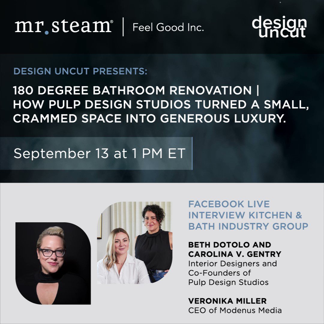 Beth Dotolo and Carolina V. Gentry of @PULPdesigns talk 180-degree bathroom renovation to create a luxury spa at home. Check out the convo with @steamtherapy and #DesignUncut. #steamstories #designuncut #design #wellness pulse.ly/970mjjuctt