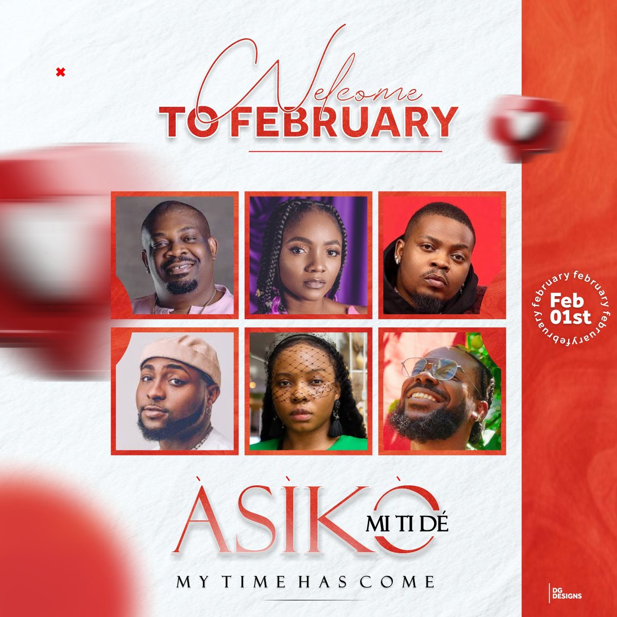 WELCOME TO FEBRUARY 🎉 Àsíkò mi ti dé (My time has come)... #dgdesigns✅ @DONJAZZY @SympLySimi @Olamide @davido @adekunleGOLD @yemialadee