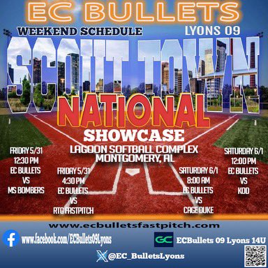 Headed down to Montgomery, AL this weekend and jumping in 16u! Friday & Saturday listed below, Bracket play will start Sunday! #ECBullets